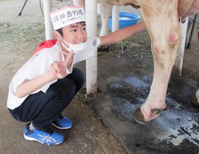 はじめに牛の説明や乳しぼりの方法を聞き、