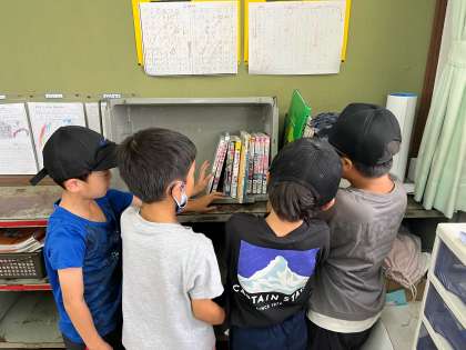 帰りの会の前に教室の本の整理をしてくれている人たちがいました。