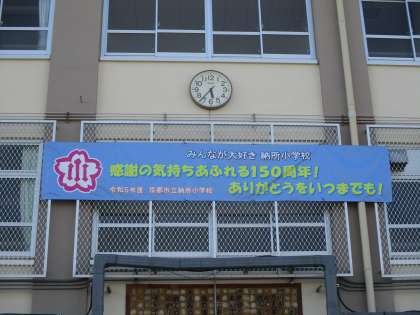 校舎に、記念の横断幕を設置しました。是非、学校の横を通られる時、ご覧ください。