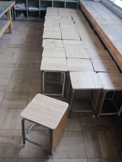 床用のシートを上手に貼っていただき、安全で座りやすい椅子になりました!図工室を使うのが楽しみです。