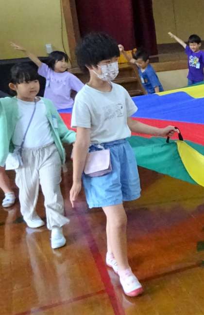 次に、「さんぽ」の曲に合わせてパラバルーンを行いました。