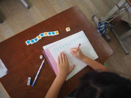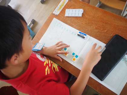 算数科ではひきざんの学習が始まりました。数図ブロックを動かしながら、答えが何になるか考えています。