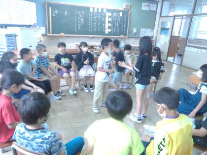 遊び係の子どもたちが「なんでもバスケット」を呼び掛けてくれ、みんなで楽しんでいます。