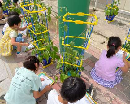1年 朝顔のつぼみができたよ