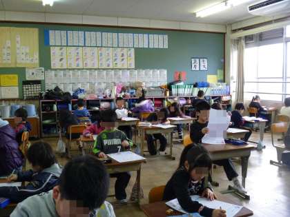 今週学力定着調査を実施しました。テスト形式で国語・算数に取り組みました。テスト形式にもだいぶん慣れてはきましたが,何度言っても見直しは甘いです。さあ,1年間のがんばりはどこまで反映されるか楽しみです。資料は今後の指導法の改善に役立てていきます。