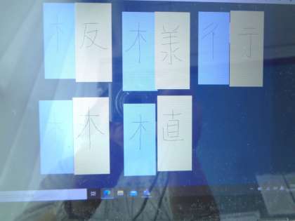 「へんとつくり」のパズルをつくろう。昨日の学習から漢字を左右に分けたカードに組み合わせて一つの漢字になるように考えました。グループの友達と問題を解きあっていきたいと思います。