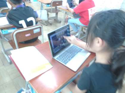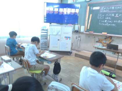 「花が咲いた後」の学習のまとめです。夏休み明けにはたくさんの実ができていたヒマワリやホウセンカを観察しました。実を付けた後は、枯れることも観察することができました。今日は、ロイロノートで植物の成長の様子をまとめて確認をしました。