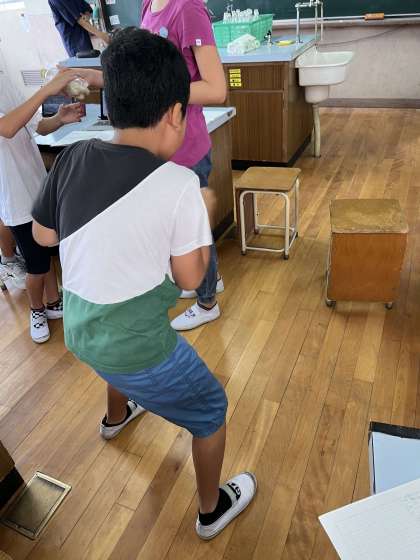 流れる水のはたらきを学習しています。侵食のはたらきについて実験を通して学んだいるところです。