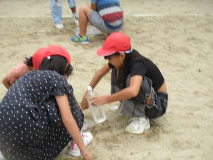 理科では、雨水のゆくえで、水の動きはどのように流れていくのか調べました。実験をする中で、改めて水は高いところから低いところへと流れることがわかりました。子どもたちは、楽しく実験をすることができました。