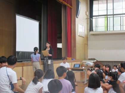 児童集会が体育館でありました。書写と夏休みの作品で賞をもらうことができました。