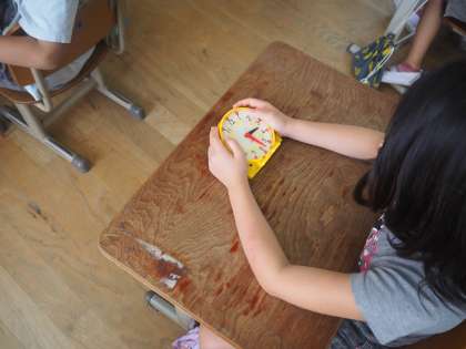 算数の時間に、時計の読み方の学習をしました。○時、○時半の読み方に慣れていってほしいと思います。