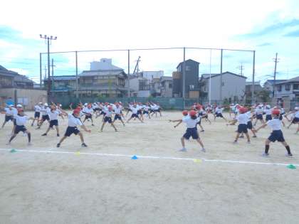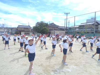 もうすぐ運動会です。鳴子をもっての練習が始まりました。みんな張り切っています。当日に向けて全体の動きや細かい部分を仕上げていきます。