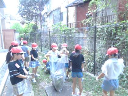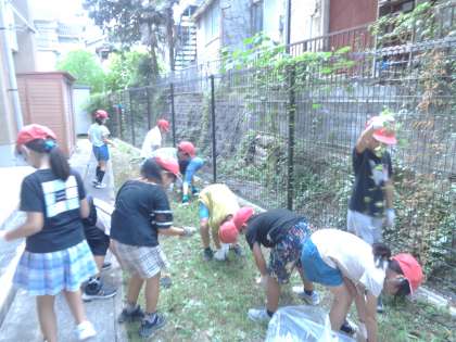 夏休み中にたくさん生えた雑草や運動所の石拾いを頑張りました。暑い中でしたが、集中して頑張りました。