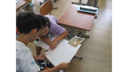 自分のお気に入りの生き物の「にんじゃカード」を作りました。「にんじゃカード」にはかくれている場所・生き物の特徴・かくれかたを書きました。今日は、作ったカードを友達と交流しました。