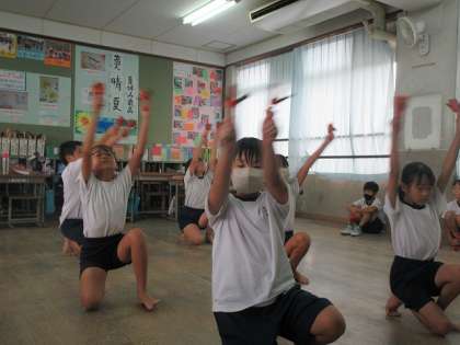 教室でも、よさこいソーランを踊りました。クラスのみんなで応援する気持ちでお互いの踊りをしっかり見ることができました。本番が楽しみになってきました。