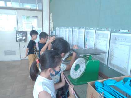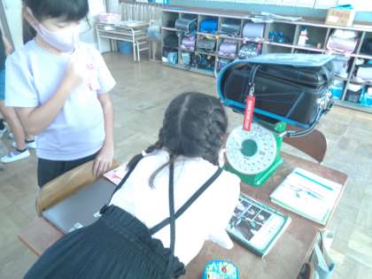 今日は、2キログラムまではかれる量りでランドセルを量ってみました。1キログラムは、1000グラムだから・・・1400グラムは、1キログラム400グラムになることにも気が付きました。