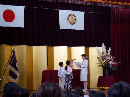 式典の終わりには、児童代表の6年生がお礼の言葉を伝え、全校で「大切なもの」を合唱しました。