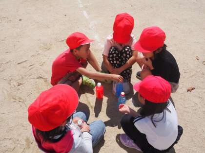 図画工作科の学習で、絵の具で色水をつくってまぜたり並べたりして楽しみました。