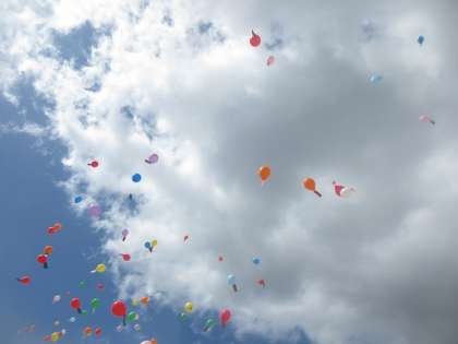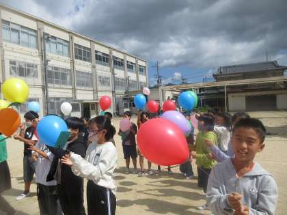 子どもたちは、ドキドキしながら風船を飛ばしました。自分の風船がどこまで行くのか楽しみです。岐阜県まで?愛知県の名古屋まで?拾ってくれた人には、納所小学校までメッセージをいただきたいです。4年生も楽しみにしています。