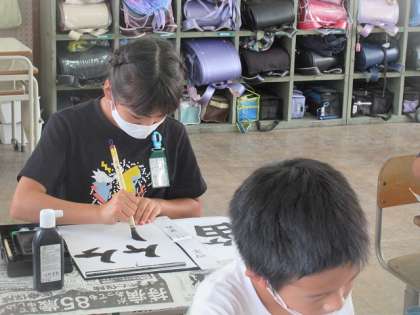 書写では、「笛」を書きました。上の部分と下の部分をバランスよく組み合わせて書くことができました。子どもたちは集中して書くことができました。