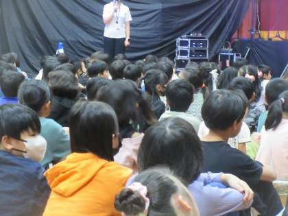 150周年記念行事「もったいないミュージカル」の鑑賞をしました。はらはらドキドキの展開で、子どもたちは、とても楽しむことができました。また、ごみの大切さについても学ぶことができました。