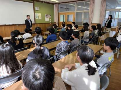 人権擁護委員会主催の「人権の花運動」の取組で納所小学校が選ばれました。人権擁護委員の方からスイセンの球根をいただきました。球根の植樹も5年生で行いました。