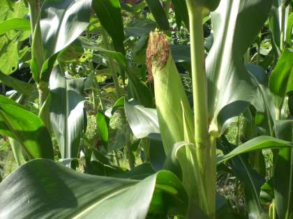 1年生のヒマワリとトウモロコシが一段と成長してきました。