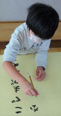筆を使うのに慣れていない子は、筆に力が入りすぎて