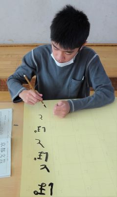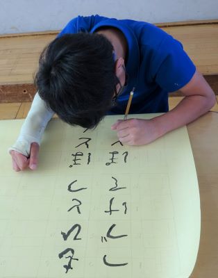 6年生には、慣れた手つきでサッサッと筆を動かして