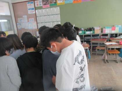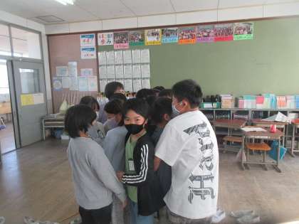 最後には、1平方メートルの新聞紙の中にクラスのみんなが入れるのかを調べました。ドキドキしながらやってみると、なんとクラスのみんなが入ることができました。子どもたちは、とてもいい表情をしていました。