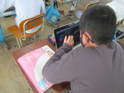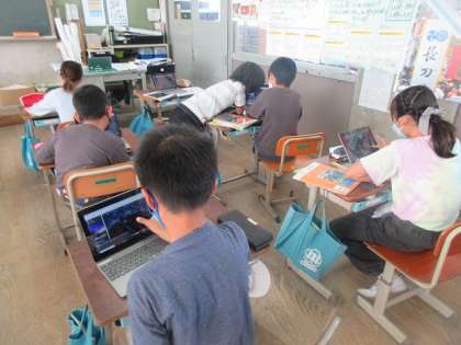 理科の「月と星の位置の変化」の学習では、タブレットを使ってきれいな星を探しました。自分が探している星が見つかるととても喜んでいました。