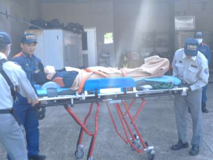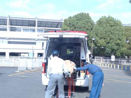 救急救命士の方には、心肺蘇生を見せていただき、機械の点検の中でも救急車のストレッチャーに不備がないか確認することの重要性を教えていただきました。実際にストレッチャーを救急車から出して人を乗せる様子も見せていただきました。