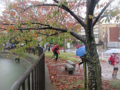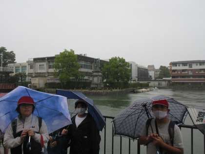 最後は、北垣国通知事の銅像まで道のりを歩きました。人工的につくられた疎水を見ながら歩きました。子どもたちは、悪天候で長い距離になっても、当時の疎水のづくりの苦労を考えながら歩きました。