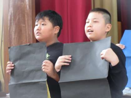 今日は、学習発表会に向けてリハーサルをやりました。学年で気持ちをひとつにして本気でがんばりました。自分のセリフに責任をもってがんばる子どもたちの本気の姿はかっこよかったです。