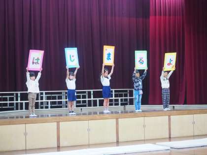 はじめての学習発表会。1年生になってできるようになったことを発表しました。緊張している子もいましたが元気いっぱい大きな声で発表することができました。