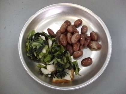 牛丼の具 かまぼこと小松菜の炒め物 金時豆のあま煮