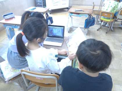 以前、1年生の友達に読み聞かせをする絵本を「話し合い」の学習で決めましたが、いよいよ来週は本番です。今日は、久しぶりにGIGA端末絵本の画像に合わせて読み聞かせの練習をしました。