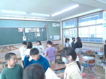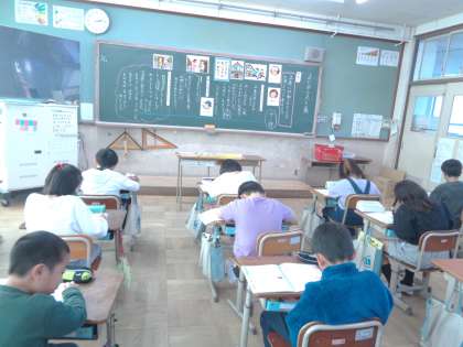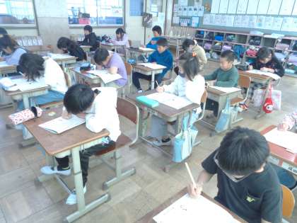 「まどガラスと魚」という教材で学習しました。キャッチボールをしていた主人公が、うっかり近所の家の窓ガラスを割ってしまったというお話です。謝らないといけないという思いをもちつつ、その場から逃げてしまった主人公。正直に伝えることの大切さについて、主人公の気持ちを通して真剣に考えていました。