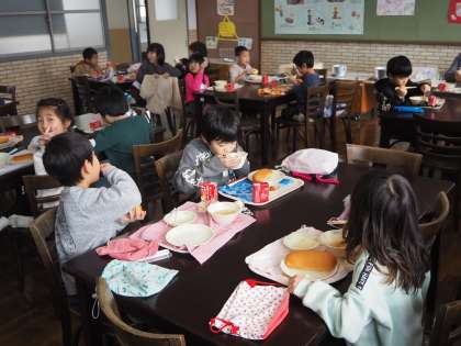 食の指導の後には、初めてランチルームで給食を食べました。いつも以上に楽しくおいしい給食の時間になりました。
