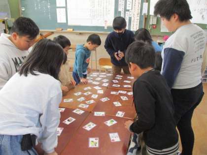 今日のなかよし活動は、かるた大会でした。どのグループも、かるたを楽しんでいました。