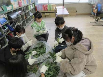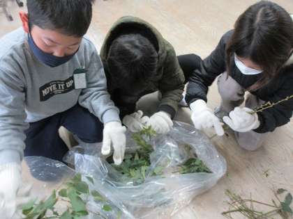 枝から生葉を取る作業をしました。10分程度行いましたが、とても疲れました。お仕事をされている方は何時間も作業をしているので、手間や時間がかかっていることに子どもたちは気づきました。