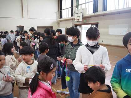 お世話になった6年生にメダルをプレゼントしました。少し恥ずかしそうにしながらも「ありがとう」と感謝の気持ちを伝えて贈ることができました。