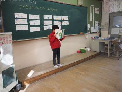 生活科「もうすぐみんな2年生」の学習で、この1年間でできるようになったことを発表しました。お家の人もたくさん来ていて緊張しましたが、みんな練習の成果を発揮することができました。