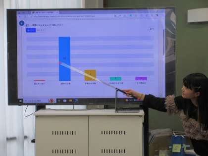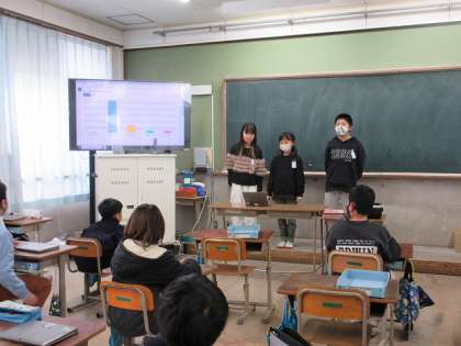 グラフを使ってわかりやすく説明するために、間をあけたり、伝えたいところは声の大きさをかえたりして工夫して発表することができていました。また、指示棒を使ってわかりやすグラフを説明しているグループもありました。