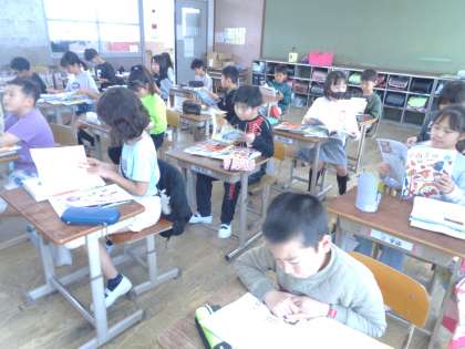新しい教科書をもらいました。子どもたちは、4年生の学習内容に興味津々です。明日からいよいよ教科の学習が始まります。