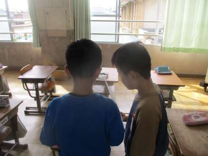 「犬をかっていますか?」「お花見をしましたか?」「ゲームが好きですか」など、どんどん進んで友達に質問していました。
