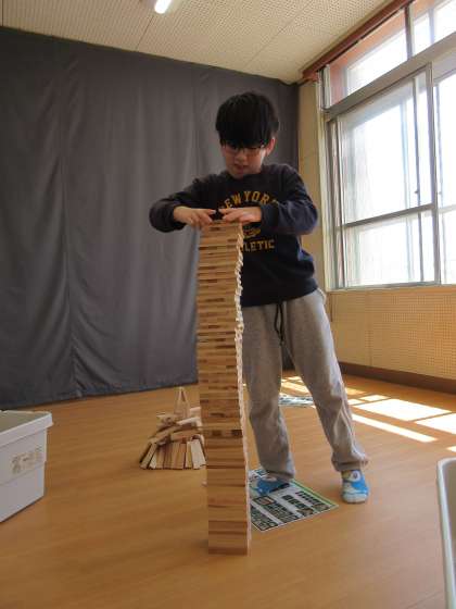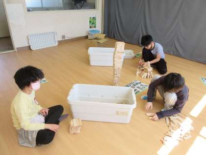 最終的には、ジェンガのようにどんどん積み重ねていた子は、何と370個に成功!今後も記録更新を目指してチャレンジしたり、思い思いに自由に作ったりして楽しみたいと思います。