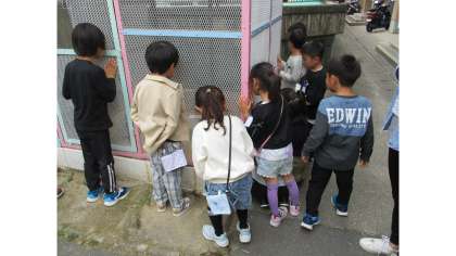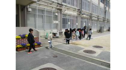 一年生になって、初めての生活科の授業をしました。学校の校庭の中でも知らない所が、たくさんあるので、探検をしに行きました。うさぎ小屋の「ミルク」を見たり、池にいる「錦鯉」を見たりしました。初めて見る生き物に子どもたちは、大興奮でした。