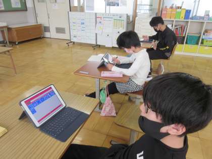 ipadの「効果音アプリ」の使い方を学習しました。クイズ番組で流れているような効果音や、感情を表す効果音など、たくさん種類がある中で、学校生活の中で使えそうな音をいろいろ試しに鳴らしてみました。