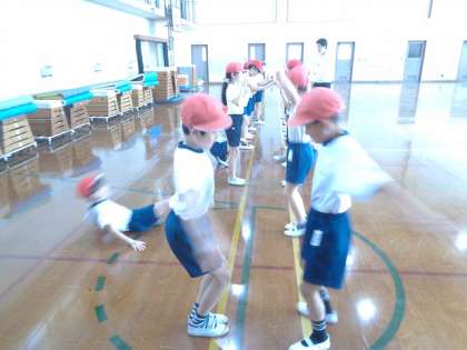 体ほぐし運動では、自分や友達の体の動きを意識しながら息を合わせて、手足や体をたくさん使い楽しみました。